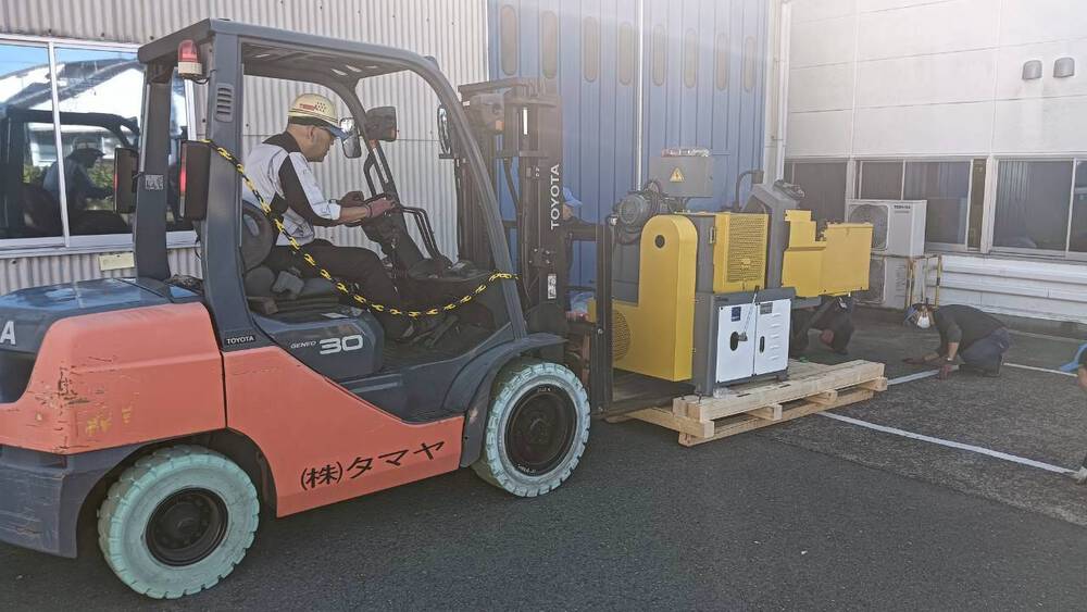 およそ1年ぶり同機種2台目の3点転造盤の搬入模様です。