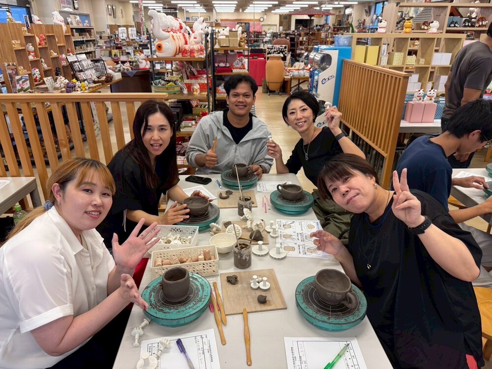 続いて常滑の「ヤマタネ」さんで陶芸体験、手び練り。