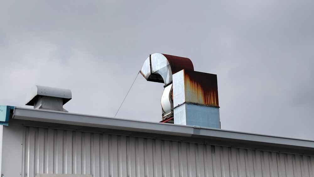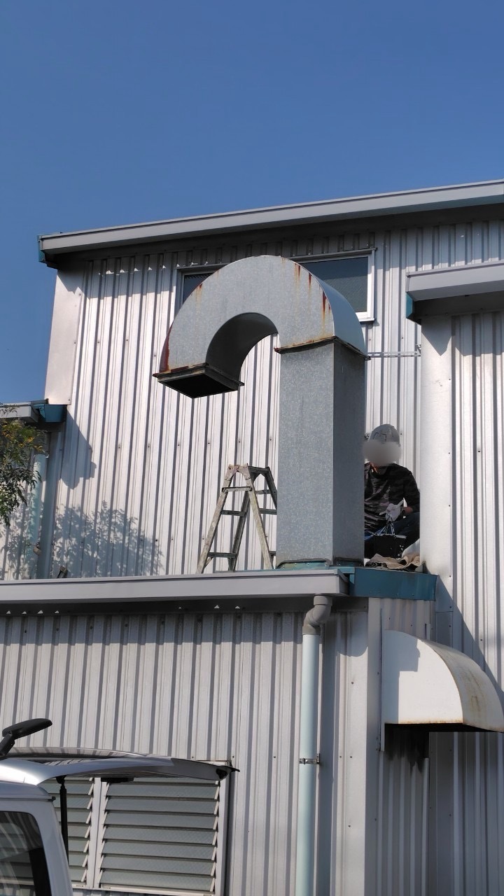 先週末の床塗装に引き続き、職人さんにダクトのサビ取り、塗装を施して頂きました。