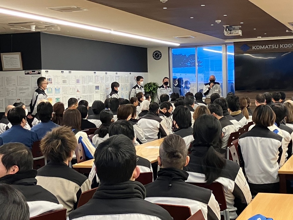 朝一の全体朝礼の一コマ。