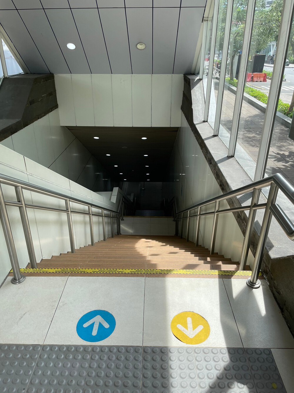 ホテルから徒歩5分に地下鉄駅があり、地下鉄を利用してショッピングモールへ向かいます。