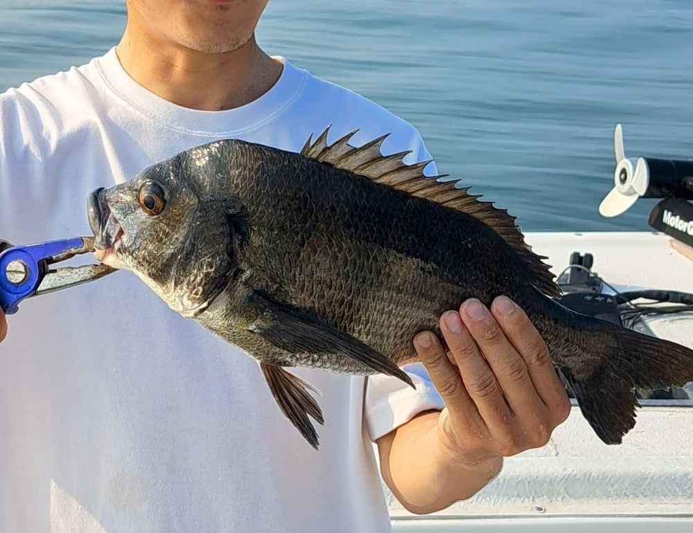 釣果は、黒鯛、キビレ、シオの計3匹をゲット