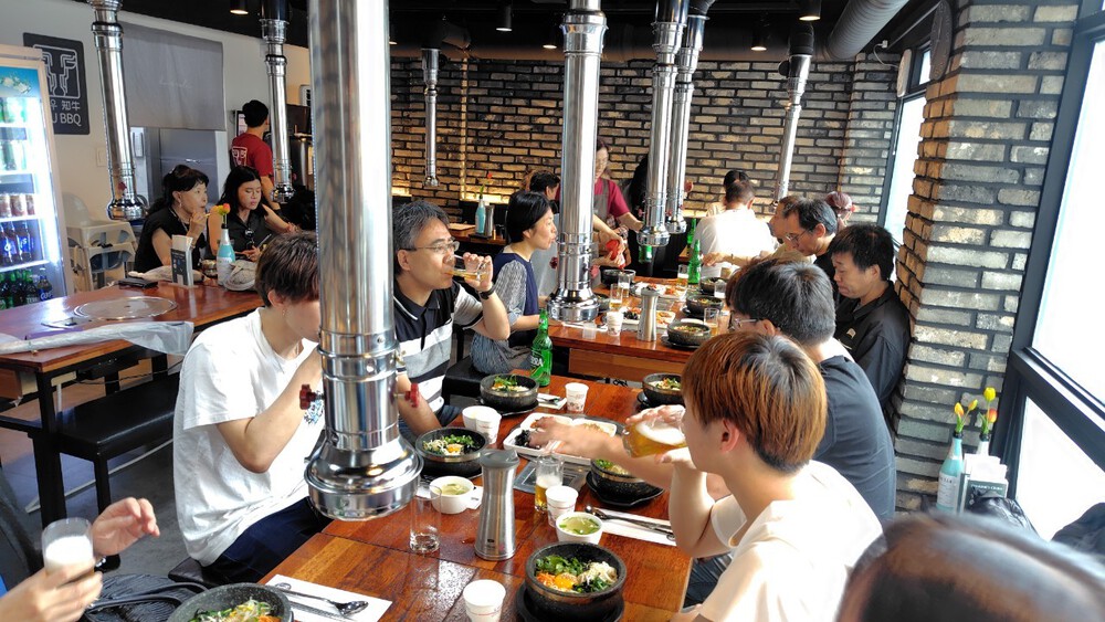 昼食は、皆で揃って石焼ビビンバを頂きました。