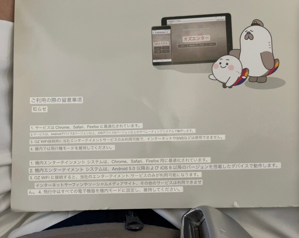 自身の携帯かタブレットを接続して機内エンターテインメントを楽しむ仕組みらしいです。