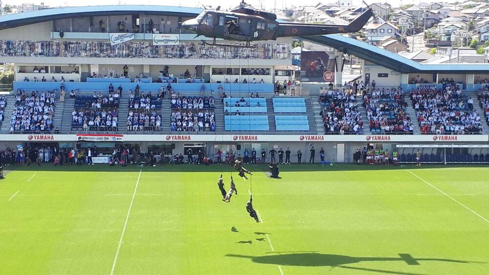 陸上自衛隊第一空挺団によるキックオフセレモニーや