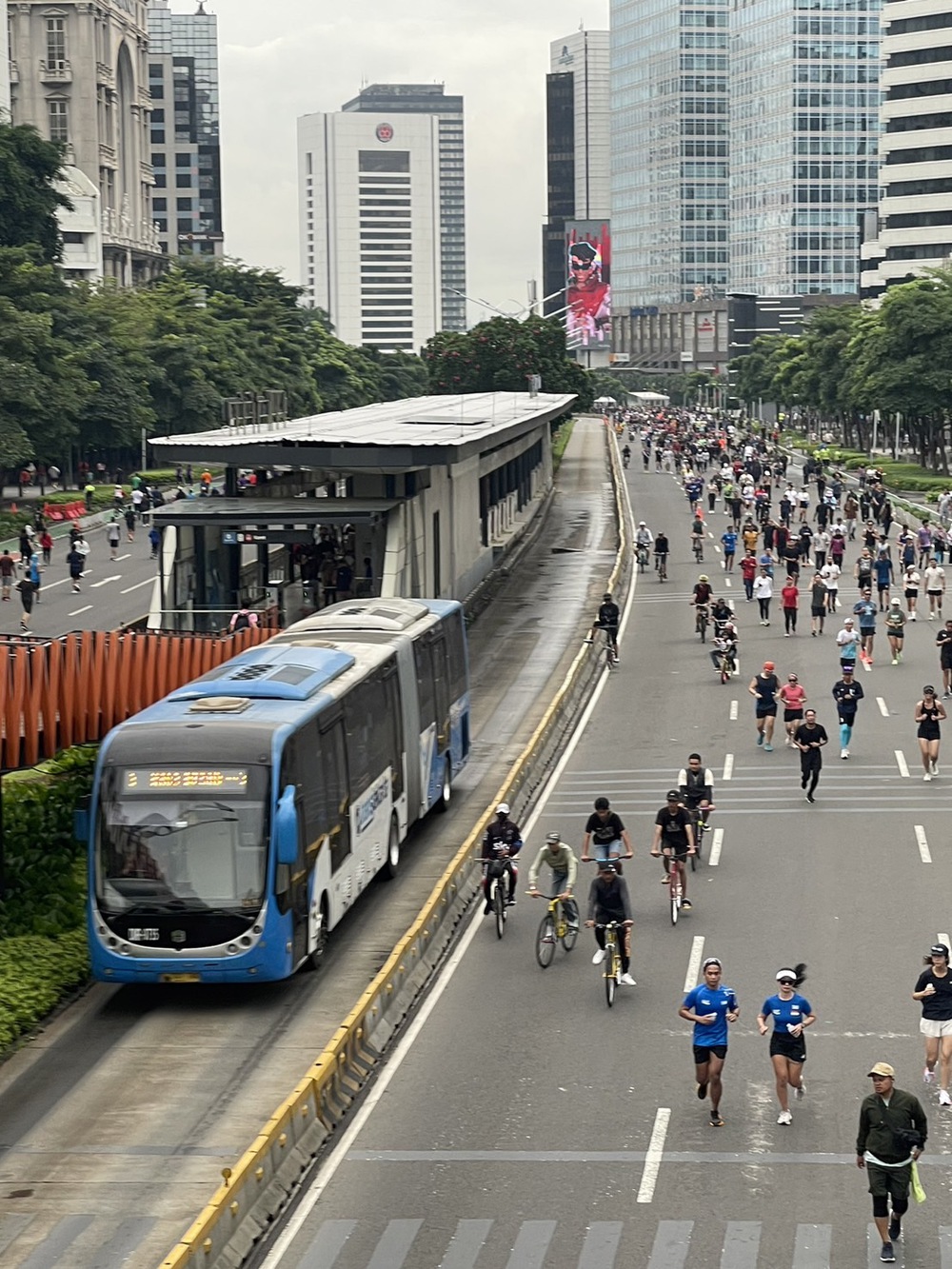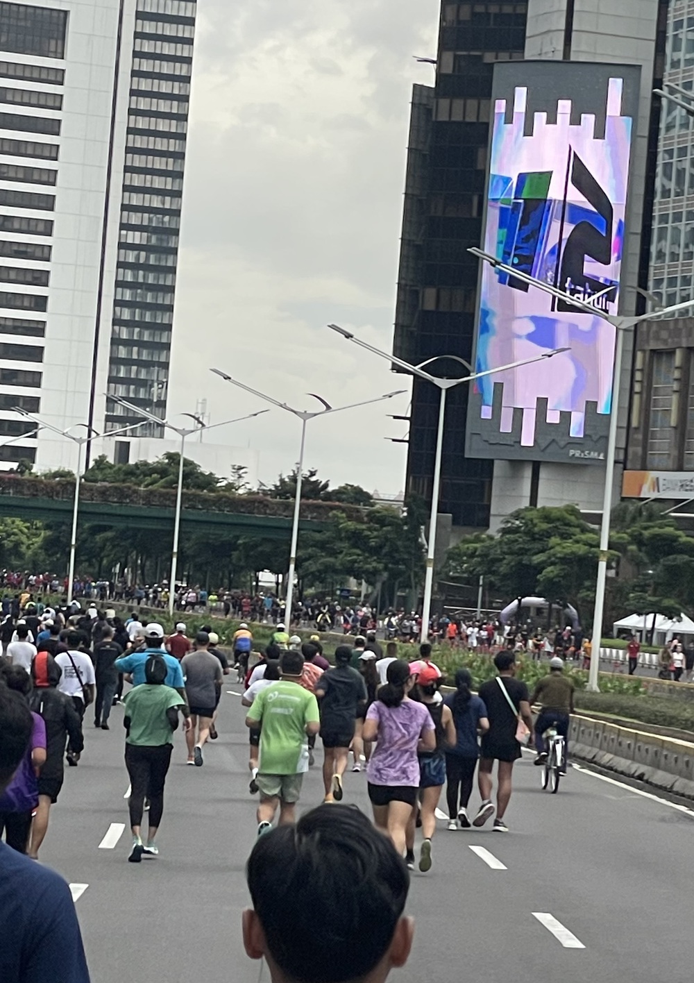 部屋から外を見ますと、シティマラソン?なのか多くの人々がランニングしてます。