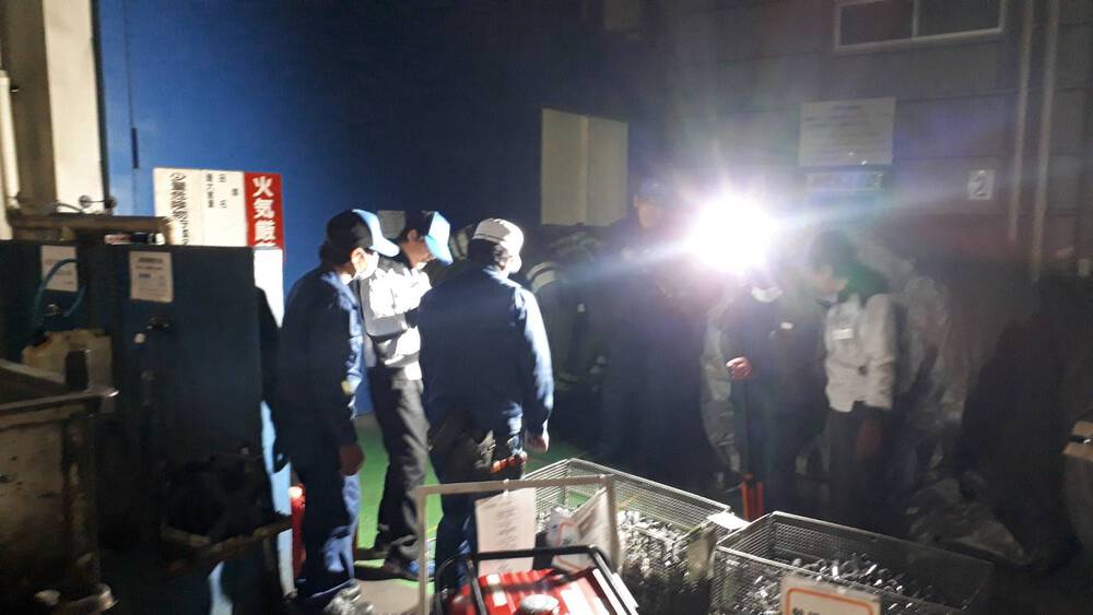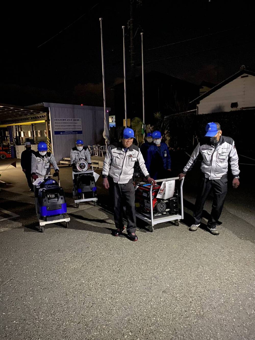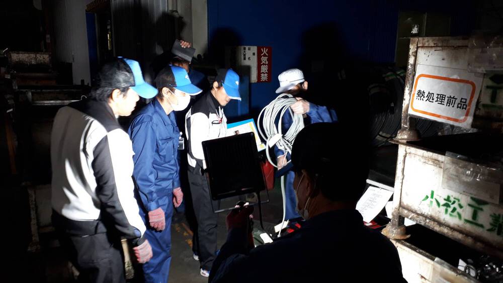 今回は夜間停電が起きた際に、最低限の事務所機能や在庫の出荷機能を残す訓練です。
