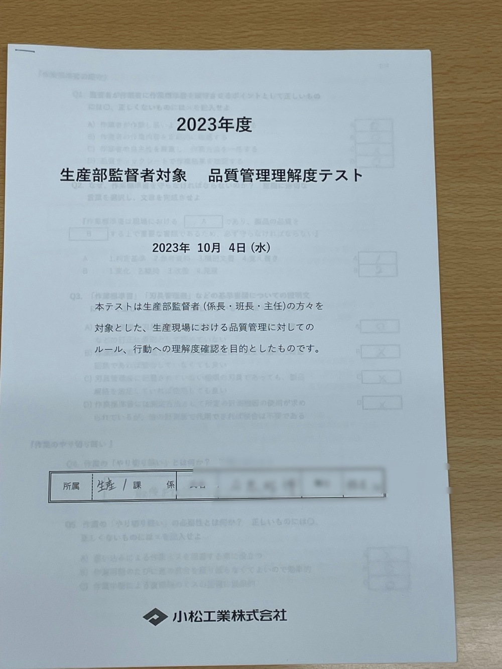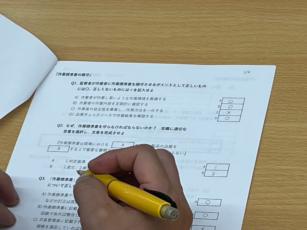 生産部&生産管理部の管理監督者を対象とした品質理解度テストを開催しました。