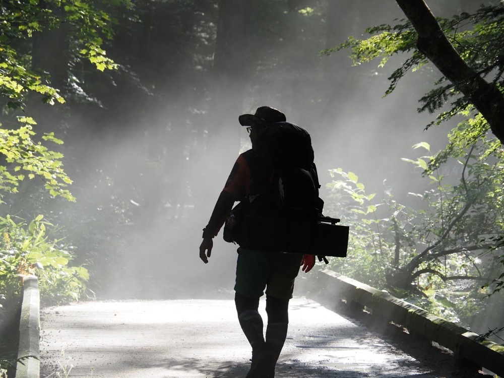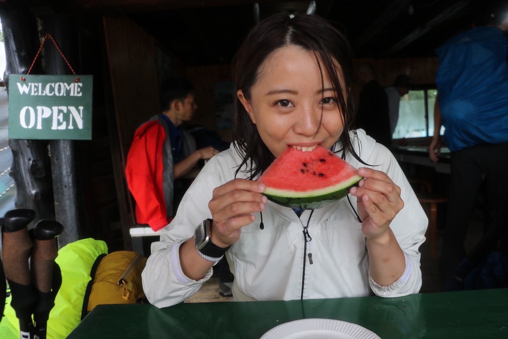 テント及び食料等15kg前後の荷物を担いで登ったため、