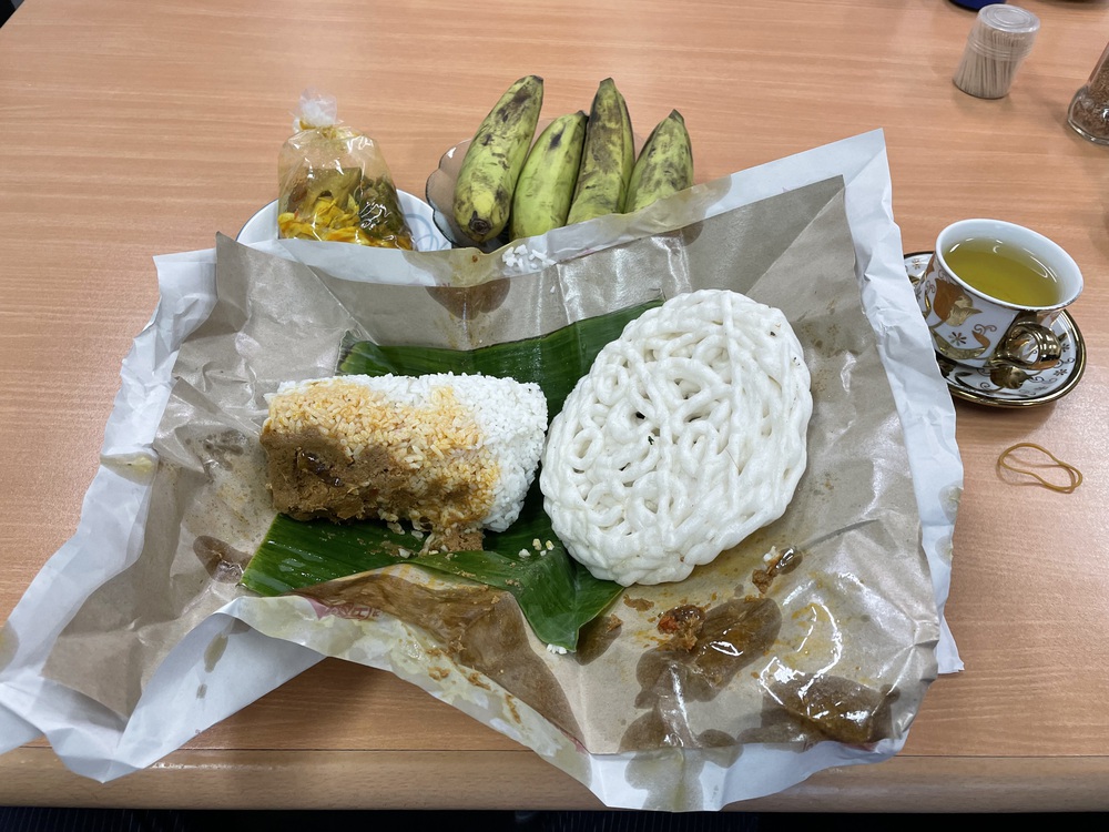 昼食に絵面は悪いが意外と美味しい「ナシパダン」を頂きます。
