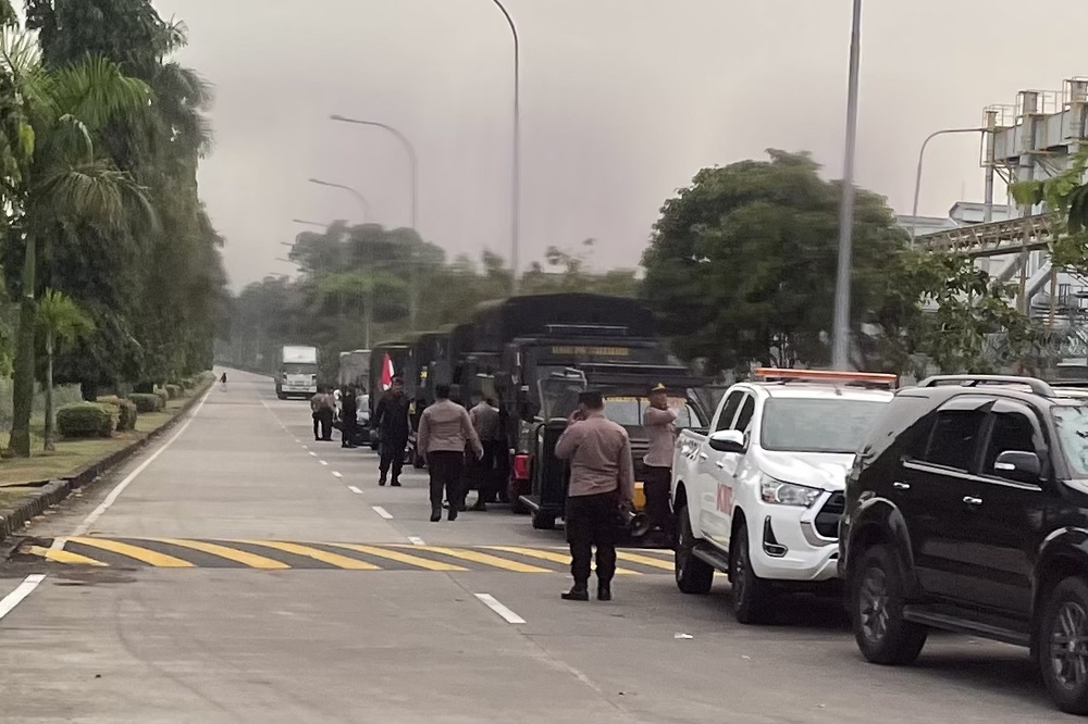 警察関係者、警察車両が工業団地のセンター事務所周辺に集結してます。