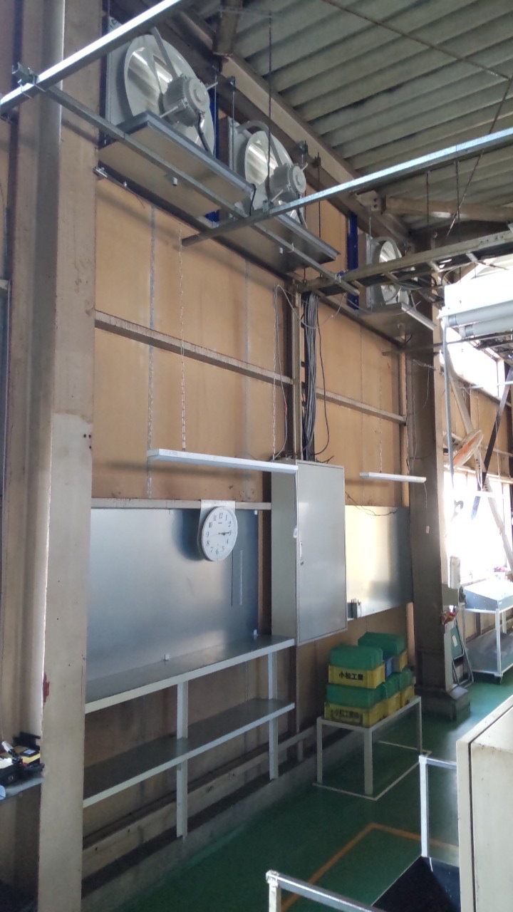 工場の換気ファン設置工事を行いました。