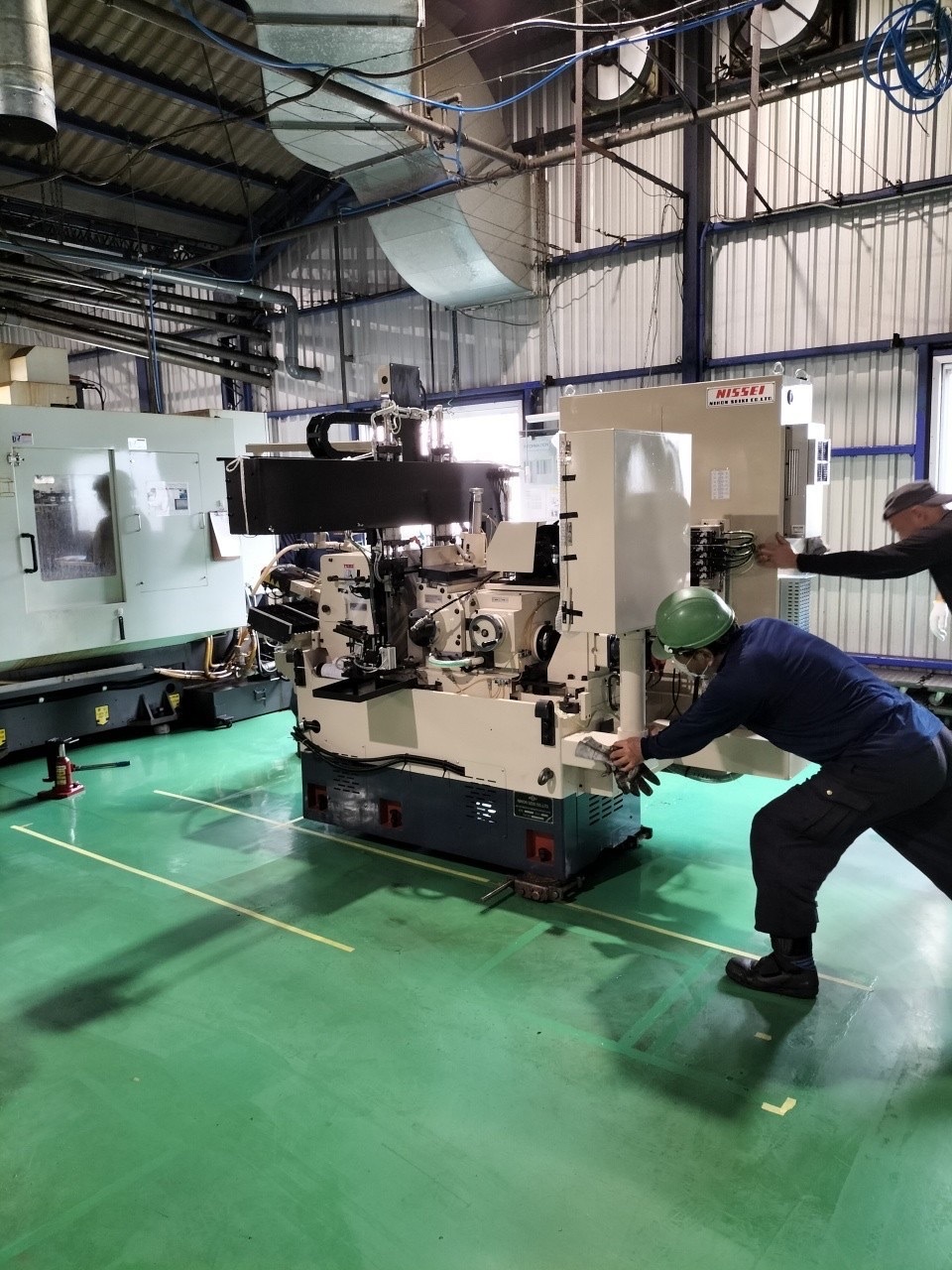 今後搬入される予定のNC旋盤と組み合わせ、新規部品の加工ラインとなります。