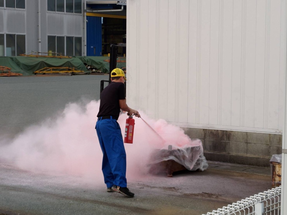 夜勤者向けに消火器を使用した消火訓練を実施しました。