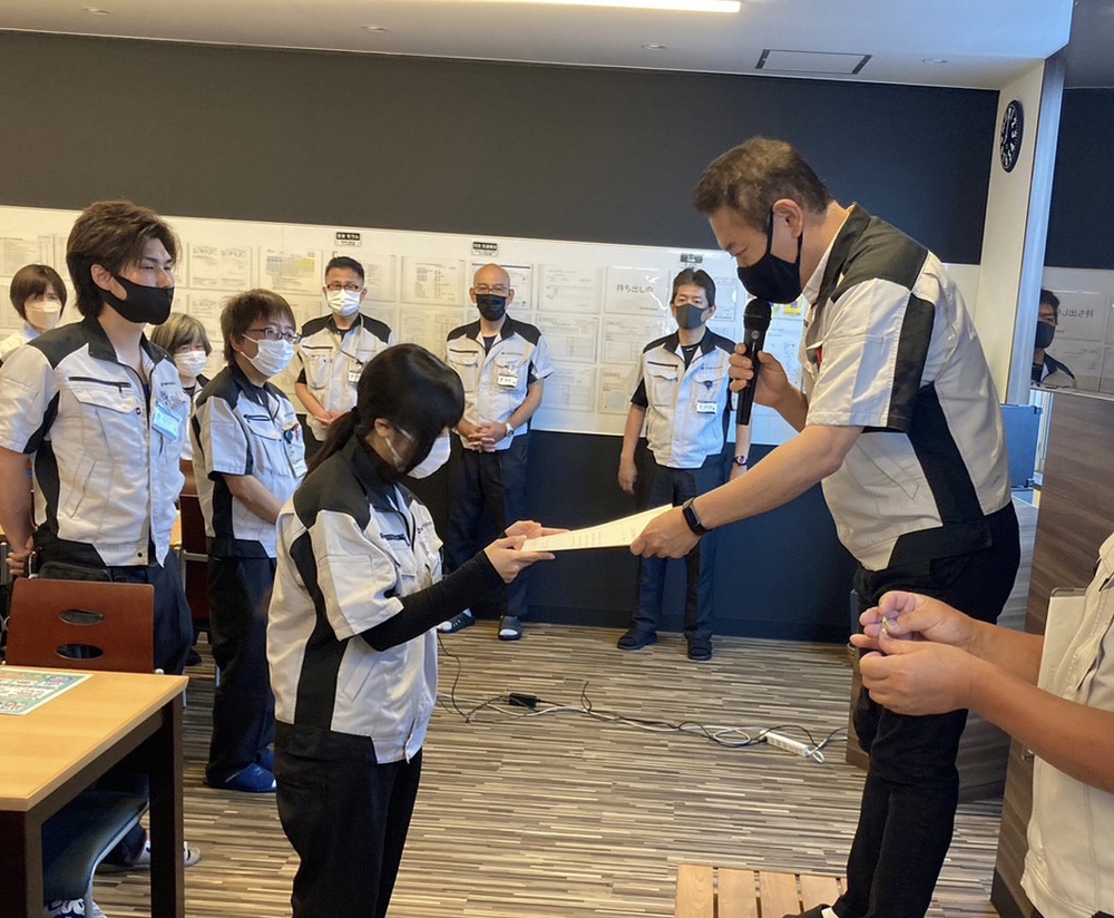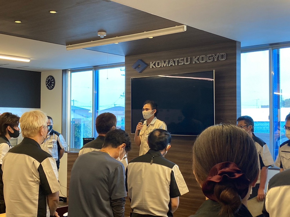 毎月第一月曜日に全体朝礼を開催し業況や品質、その他情報共有を図っています。
