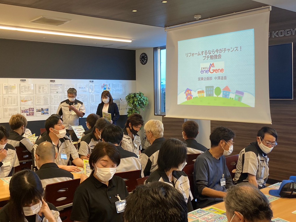 朝礼終了後は、エネジンさんからリフォームの補助金についてのプチ勉強会を。