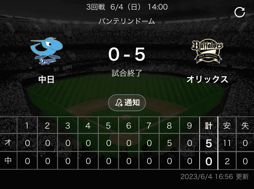 中日髙橋 宏斗投手の好投虚しく、ドラゴンズの完封負けでした。
