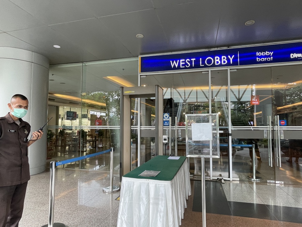 ジャカルタ市内のモールではセキュリティを通るのが一般的。