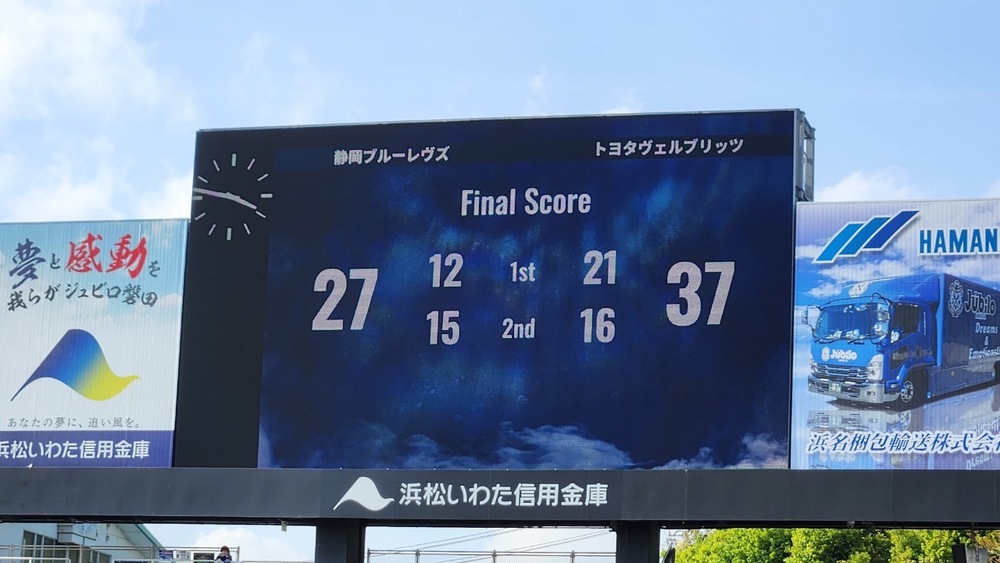 静岡ブルーレヴズ vs トヨタヴェルブリッツ戦の試合結果速報です。