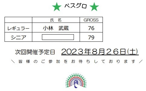 個人戦は、K部長がグロス76でベスグロ賞を獲とく。 素晴らしいスコア