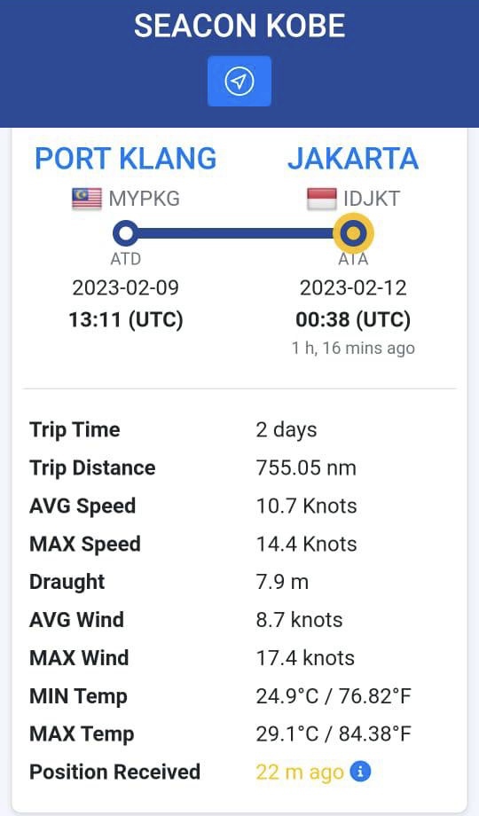 1/26に横浜港を出港しました大型設備が途中シンガポール港、マレーシアのポートクラン港を経てジャカルタのタンジュンプリオク港に到着しました。