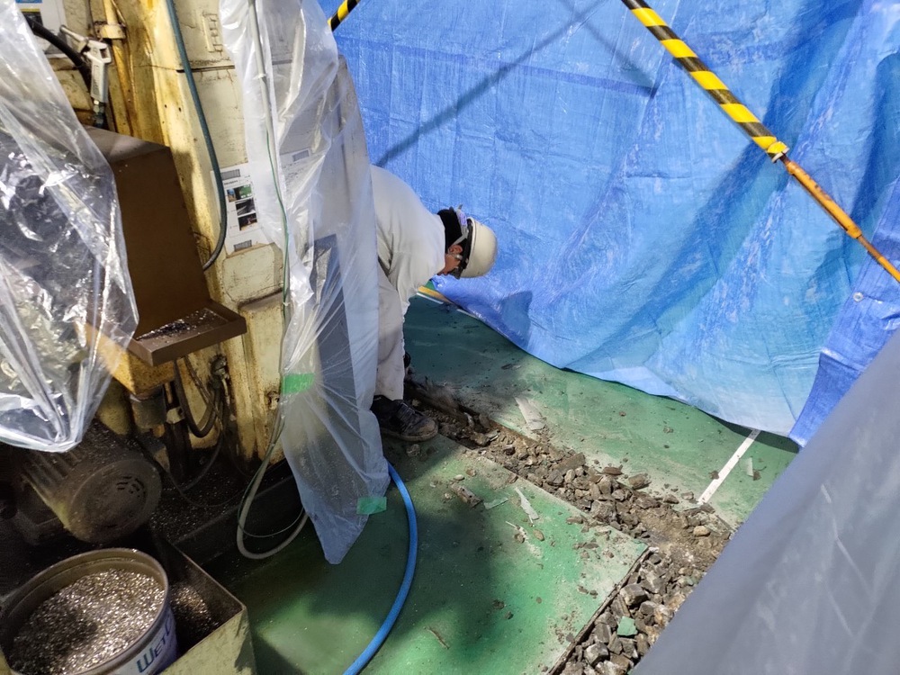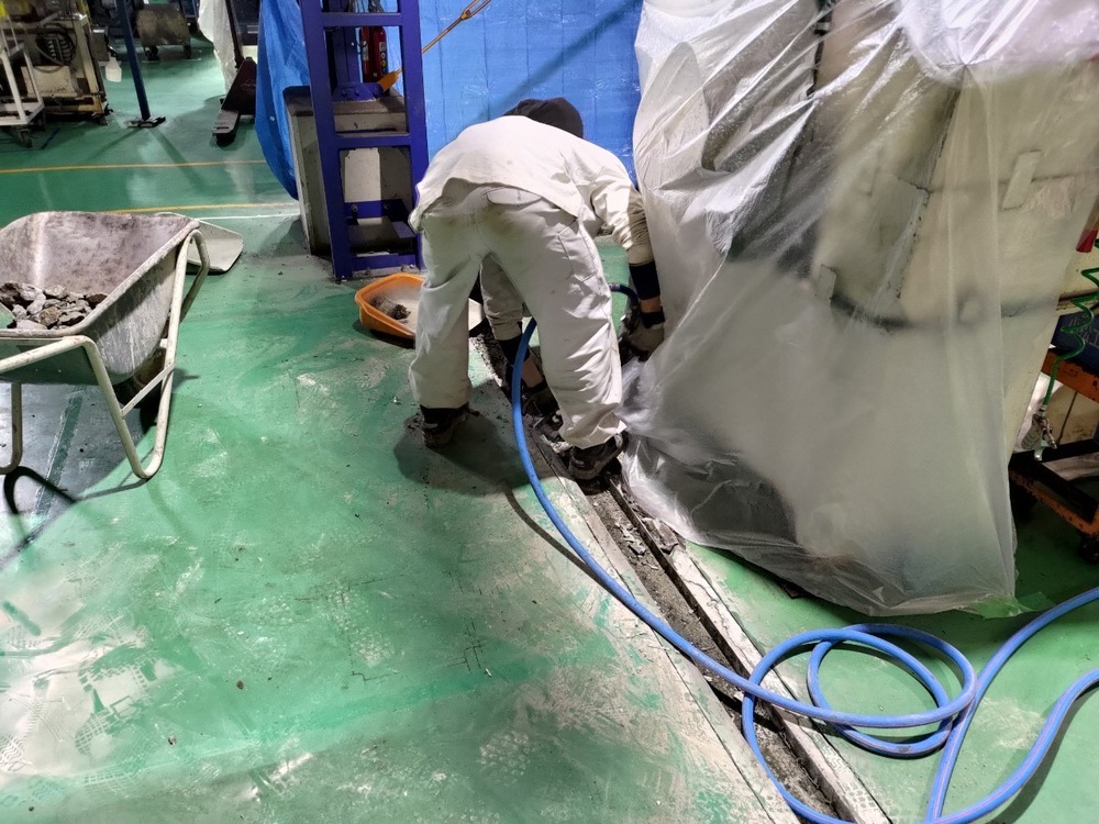 設備の更新により不要となった側溝、グレーチングを撤去。