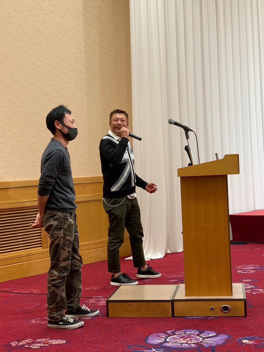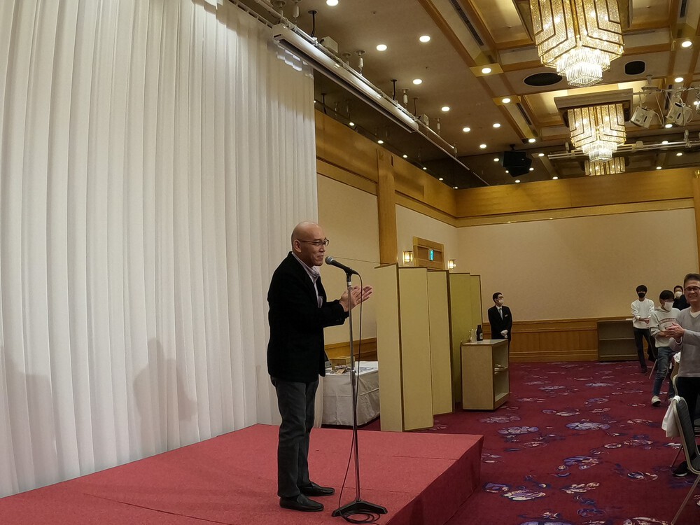 最後の締めは、今4月にインドネシアから帰任したM部長!