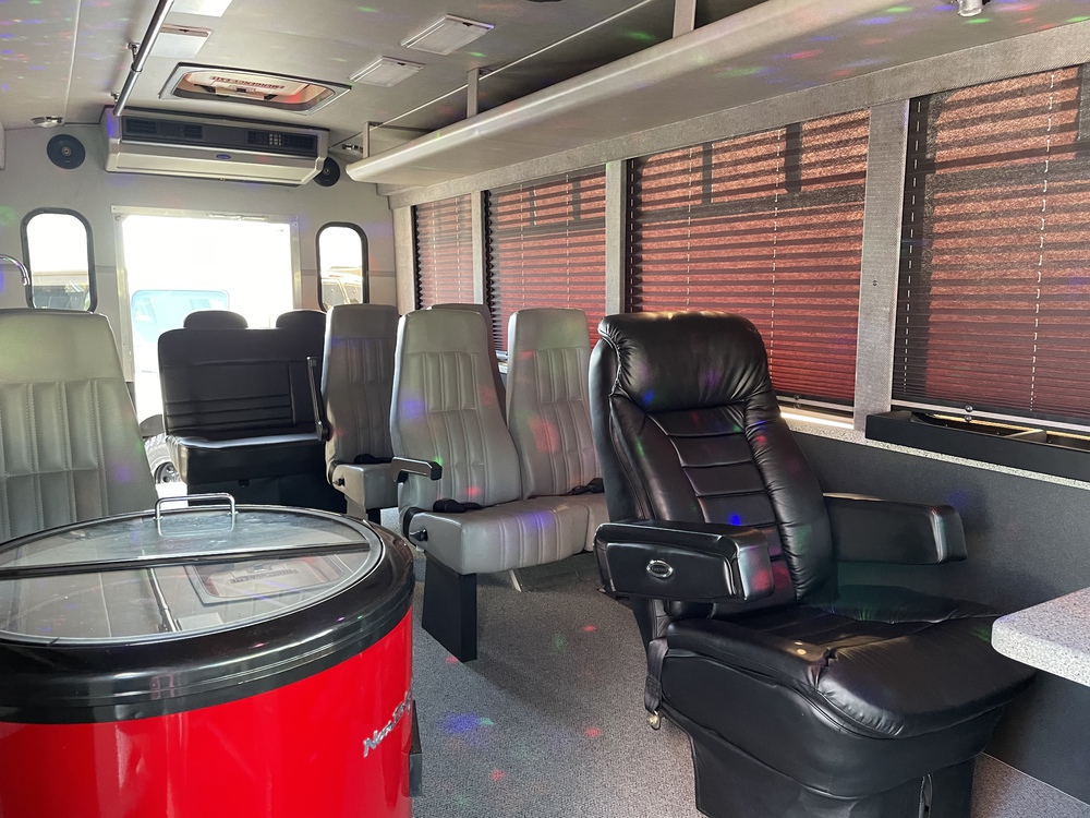 大音量スピーカーにミラーボールと大型TV、冷蔵庫も完備。