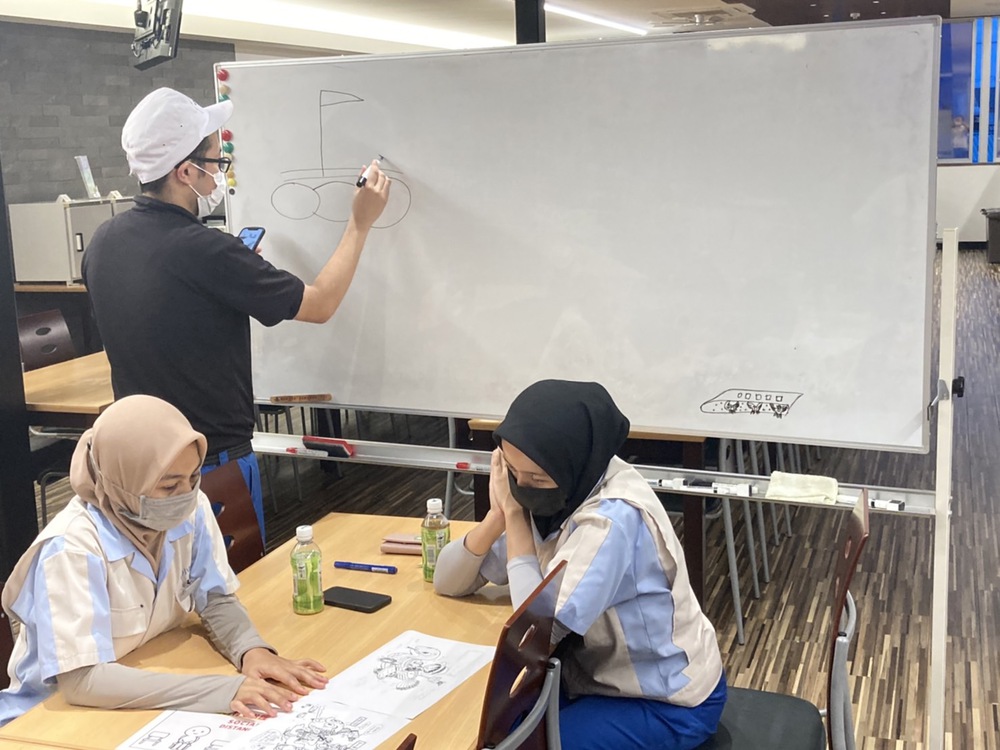 どんな車両デザインにするか皆で案出しをしてます。女性陣も参加