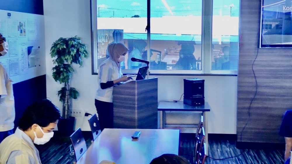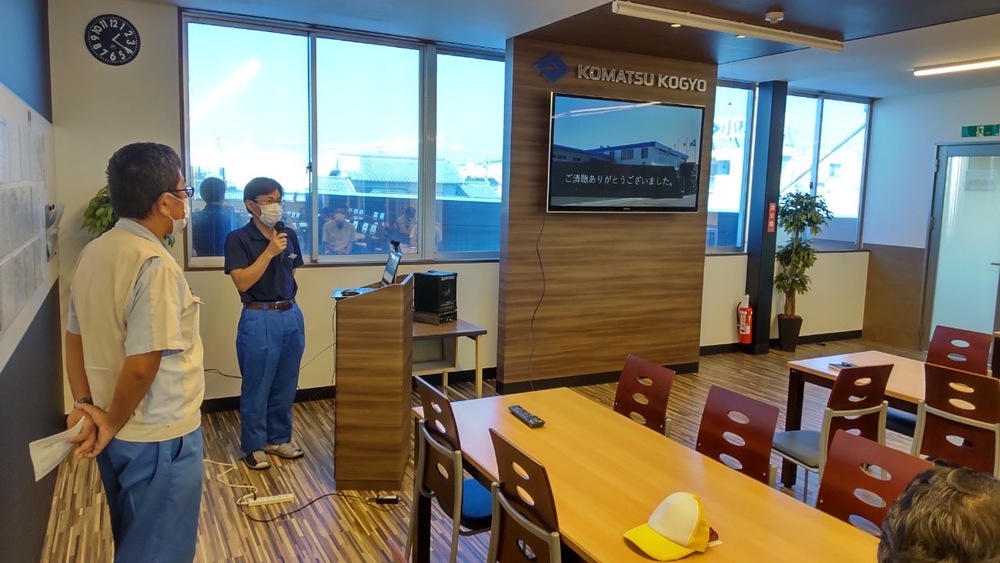Kalau kalian sudah lulus, Semoga kita bisa bekerja bersama membangun masa depan grup komatsu .