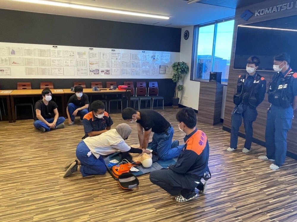 AEDの使用方法や人工呼吸のレクチャーも消防署の指導を仰ぎながら。