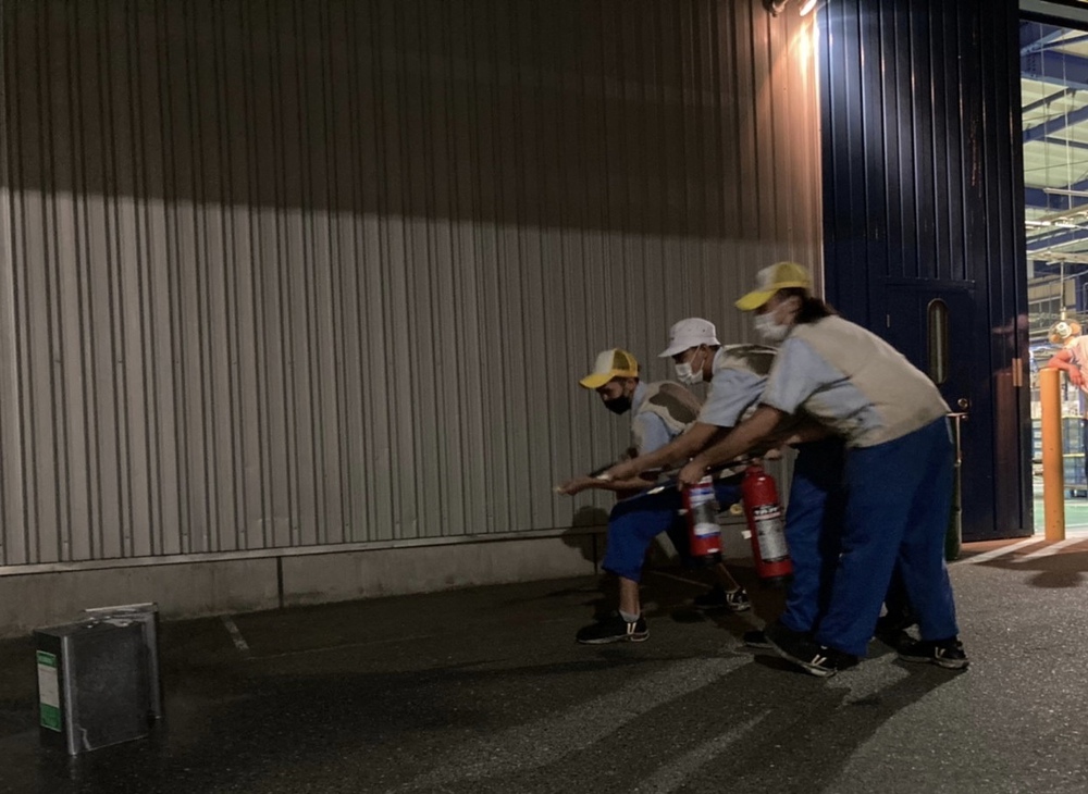 同日の夕刻、夜勤帯の消火器訓練も実施しております。