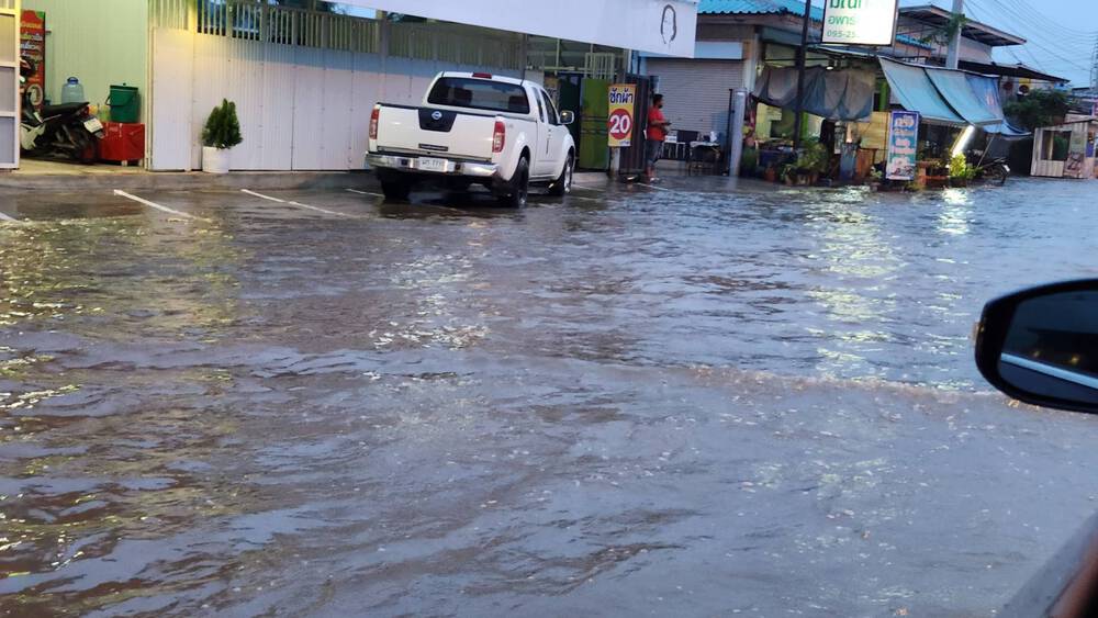 昨日に引き続き道路が冠水…。