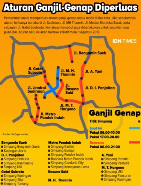 ジャカルタ市内の一部では渋滞緩和のため、車のナンバー規制を実施しています。