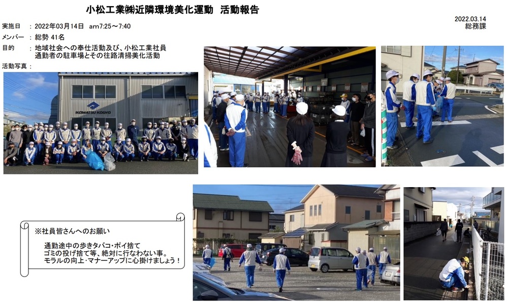 昨日も41名と多くの社員の参加のもと「近隣環境美化活動」を実施致しました。