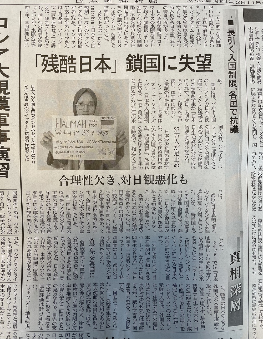 日本の在留資格を持ちながら入国できない留学生、技能実習生、外国籍の家族らが2022年1月時点で40万人…。