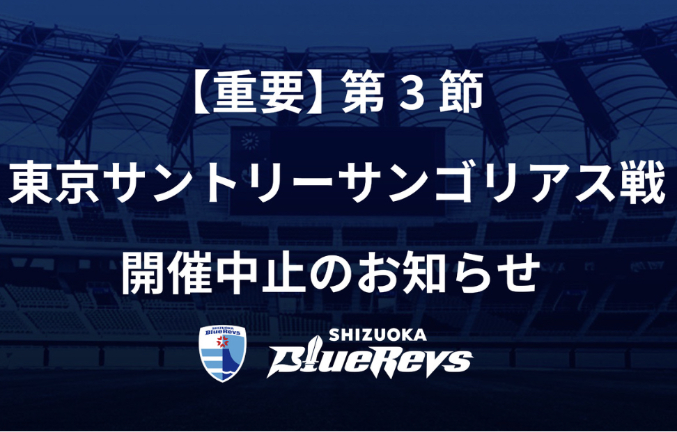 1月23日(日)に予定されていた静岡ブルーレヴズのホーム(ヤマハスタジアム)開幕戦、ジャパンラグビーリーグワン2022「第3節 静岡ブルーレヴズ vs 東京サントリーサンゴリアス」の開催が急遽中止となってしまいました。
