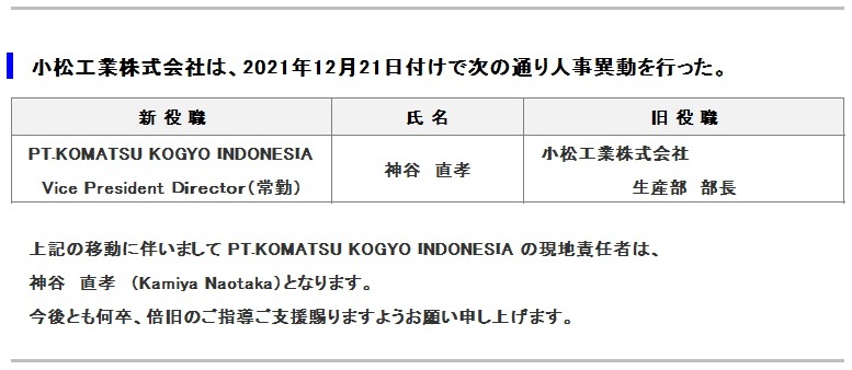 冷間鍛造を柱に各種部品を完成品まで一貫生産。自動車部品を中心に電動アシスト自転車の部品や工作機械や建機部品、鉄道関係の部品など提案型の物造りをしています。こちらのブログでは、会社での出来事や会社主催のイベントなどのブログをUPしていきます。本業は勿論、以外の私たち小松工業のもう一つの顔をぜひご覧ください。