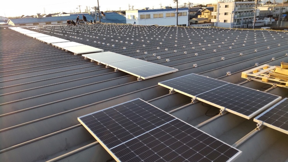 ひばり屋根南側は、すでに2012年より太陽光発電パネルを設置してますので、これで工場屋根全面に太陽光パネルが敷き詰められる形になります。