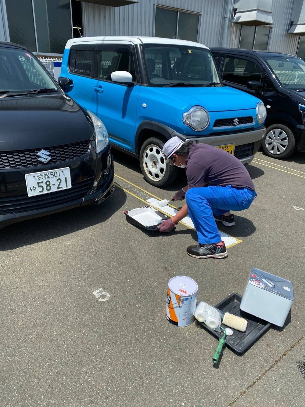来客者駐車スペースもライン引きをしています。