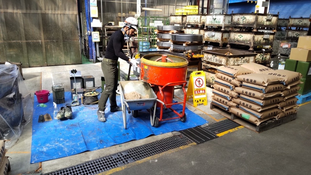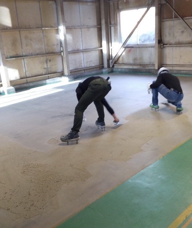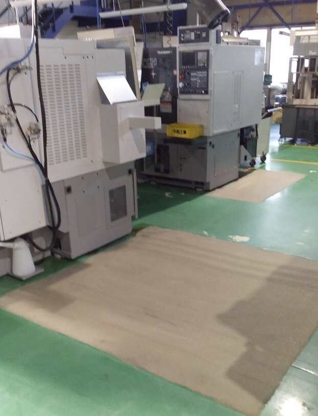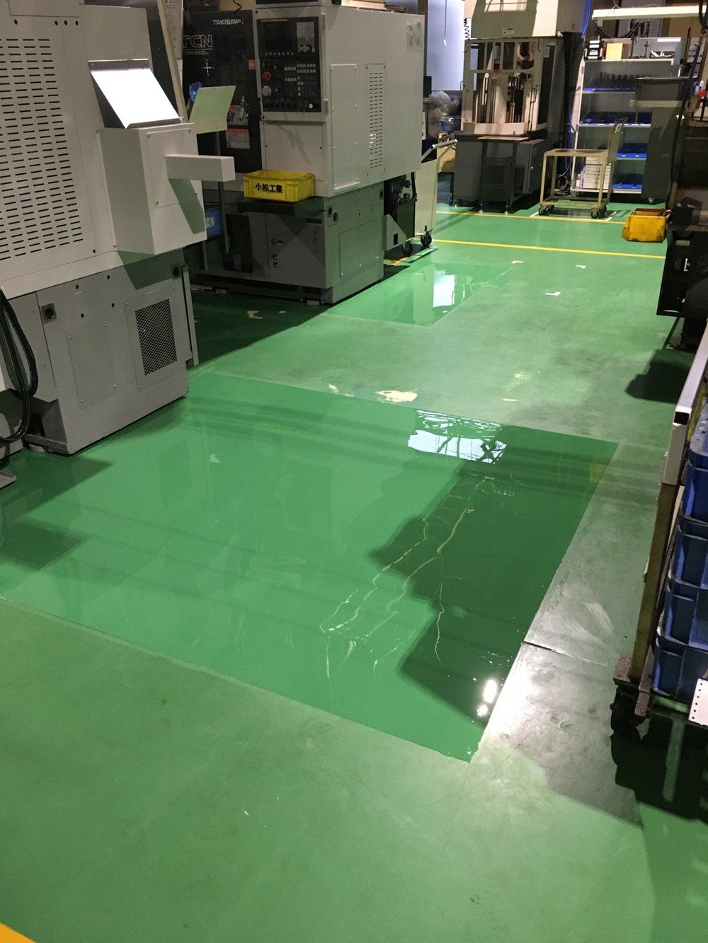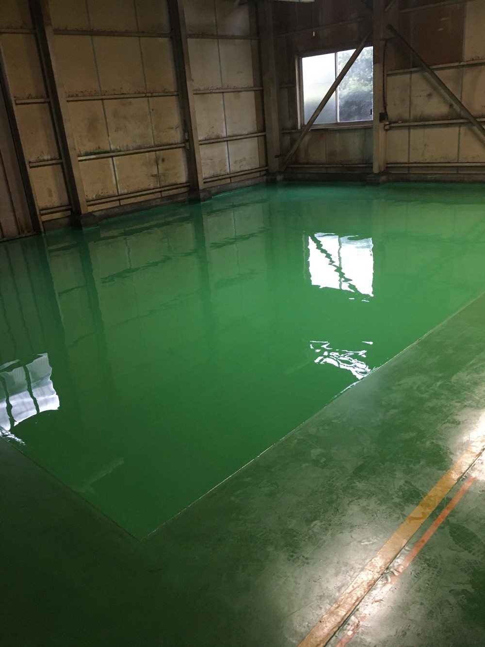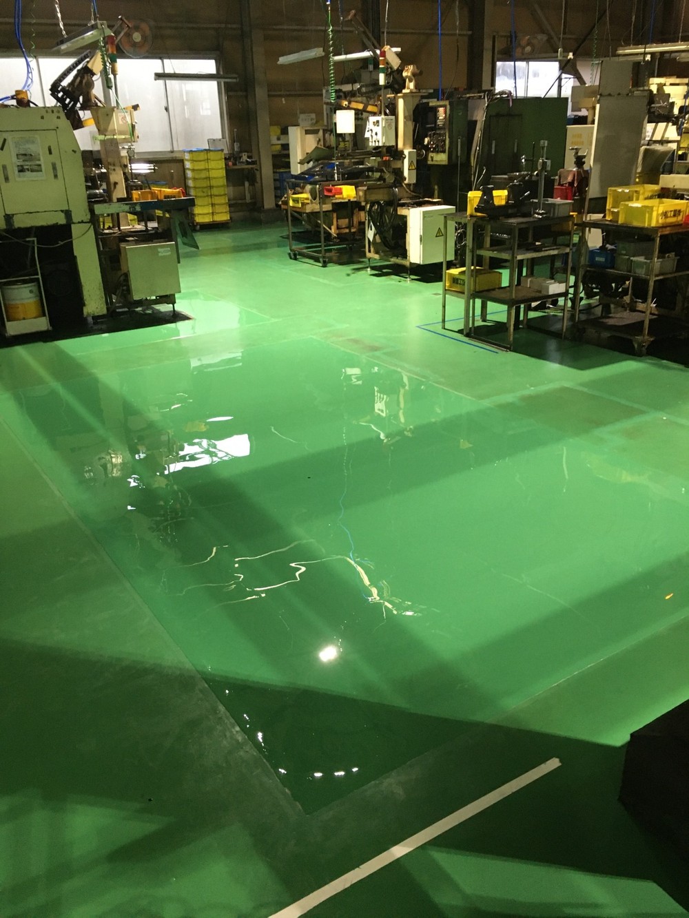 フォークリフトや台車、パレット移動等々、1年生産活動を続けますとそこそこ工場の床が傷みます。