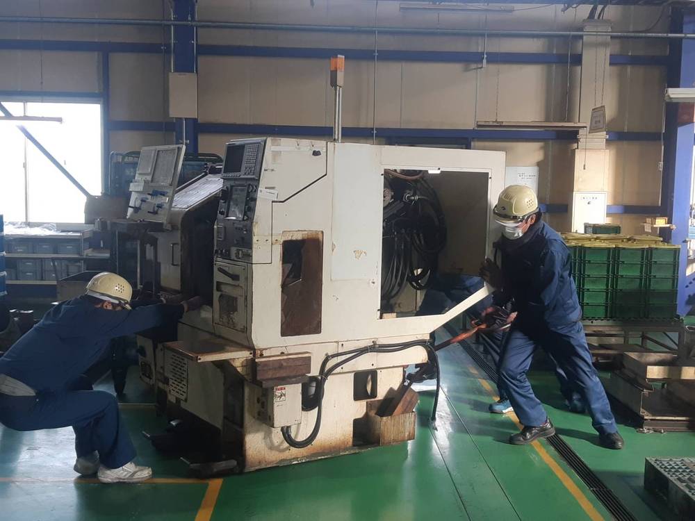 新規NC旋盤を入れ込む為のラインレイアウトを自分たちの手で創り出します。
