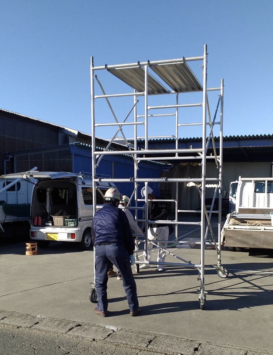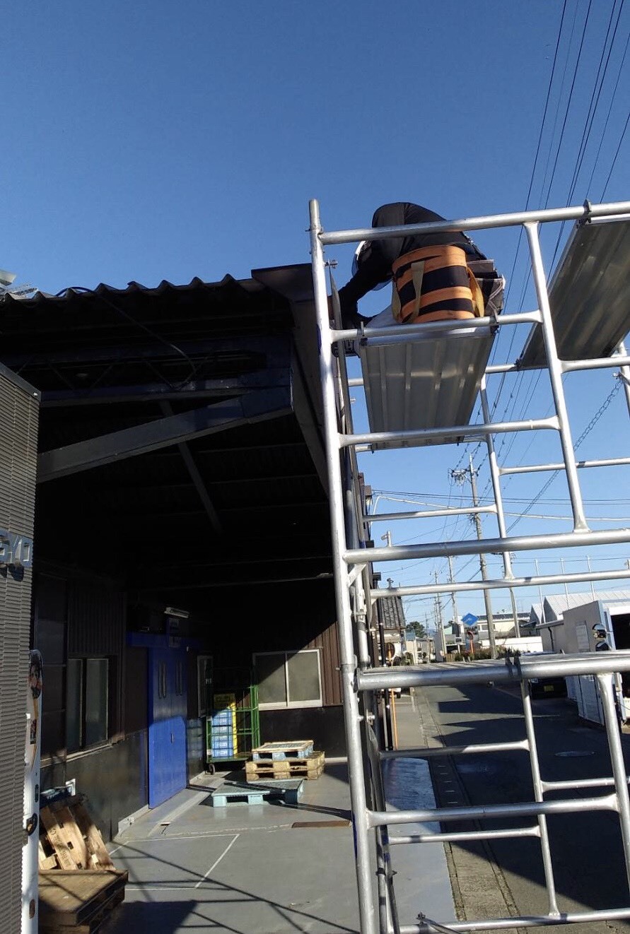 生産管理事務所前の屋根を、