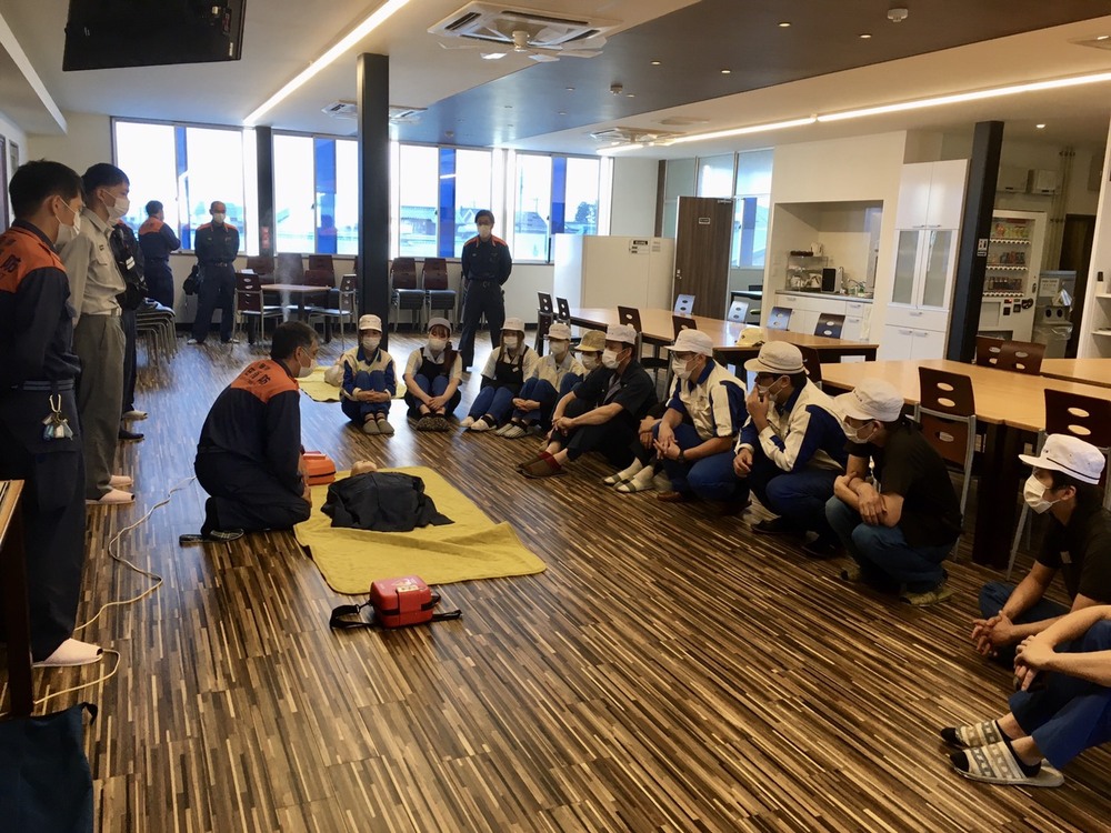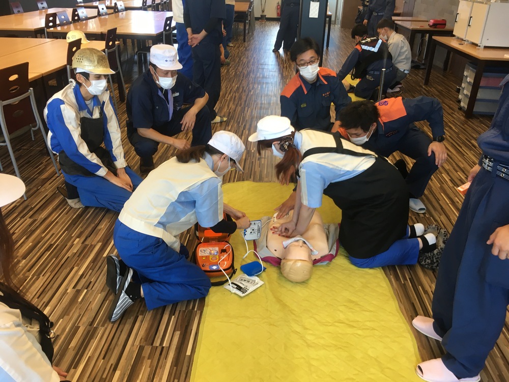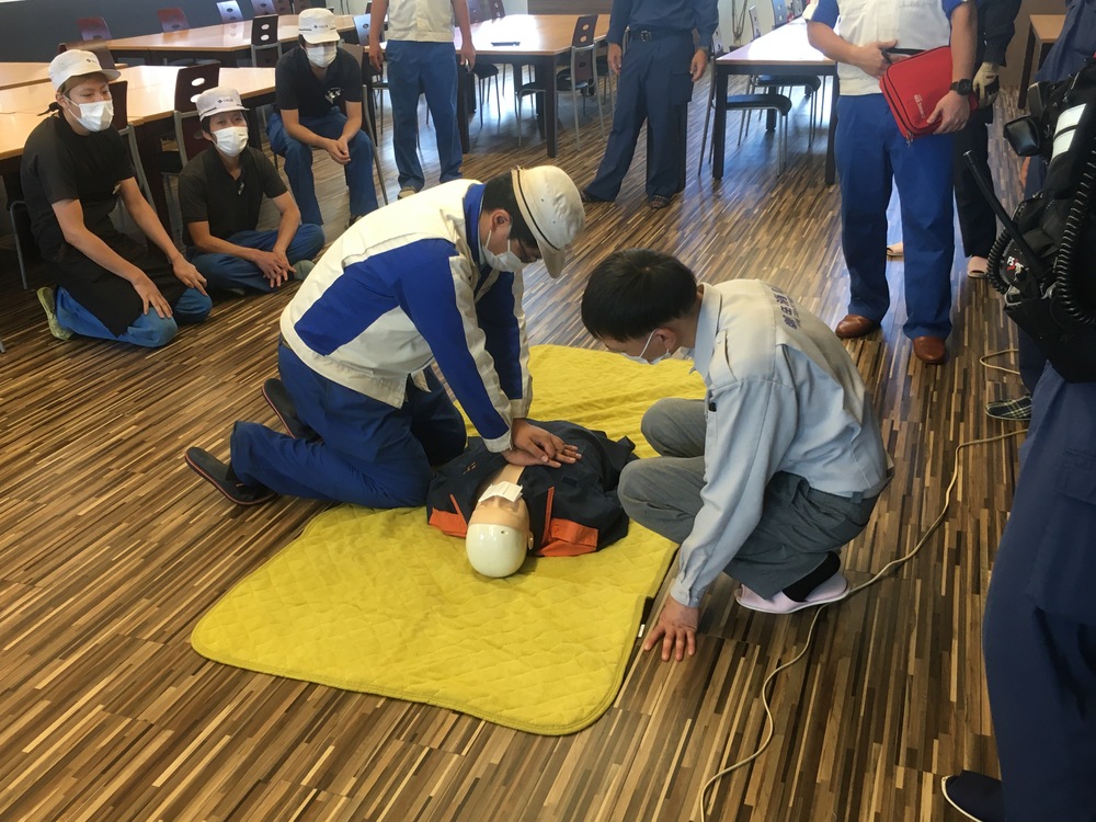 AEDの使用方法を消防署の指導を仰ぎながら訓練しました。