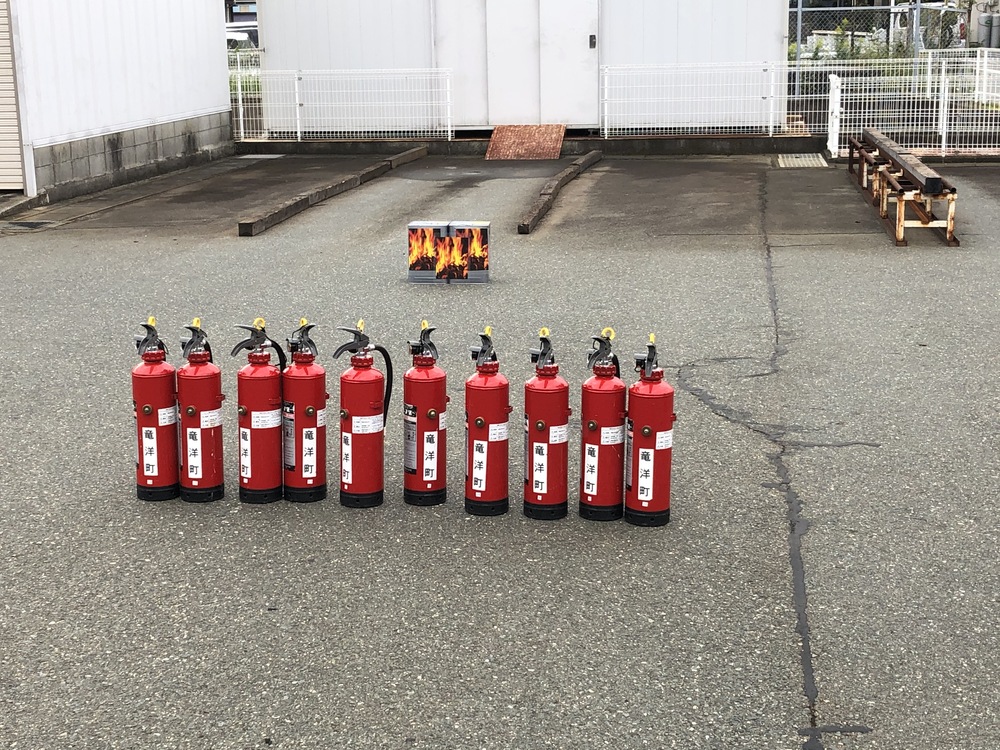ひと昔前は、実際に火を焚いて本物の消火器を使ってやってました。