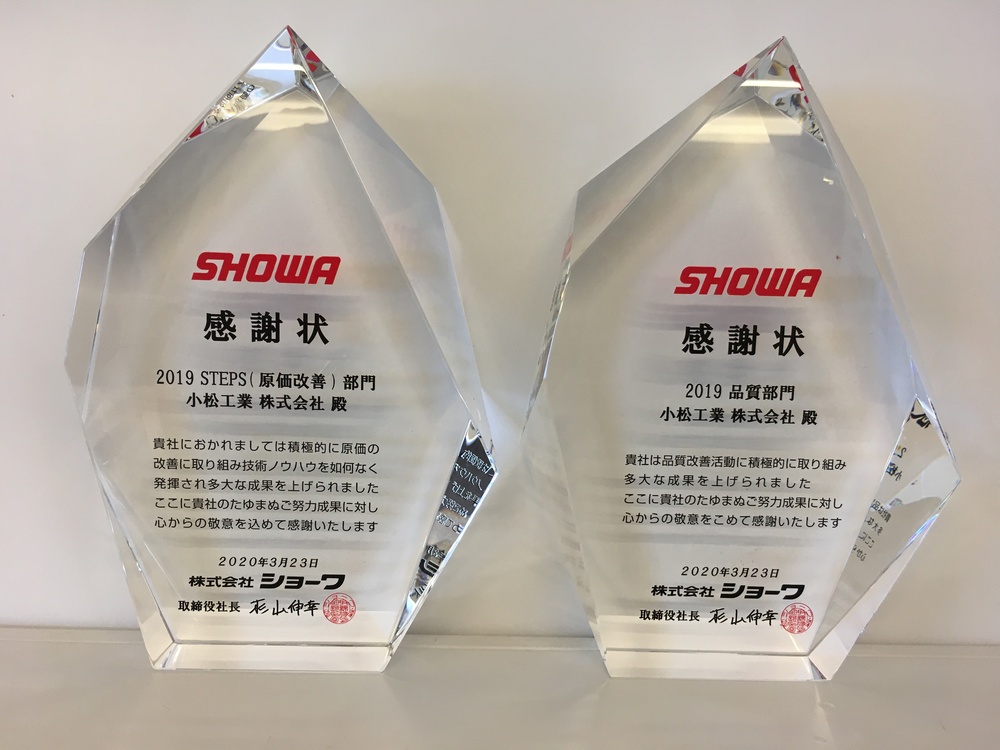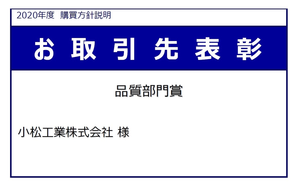 この度小松工業株式会社は主要取引先でありますお客様より、2019年度の品質、