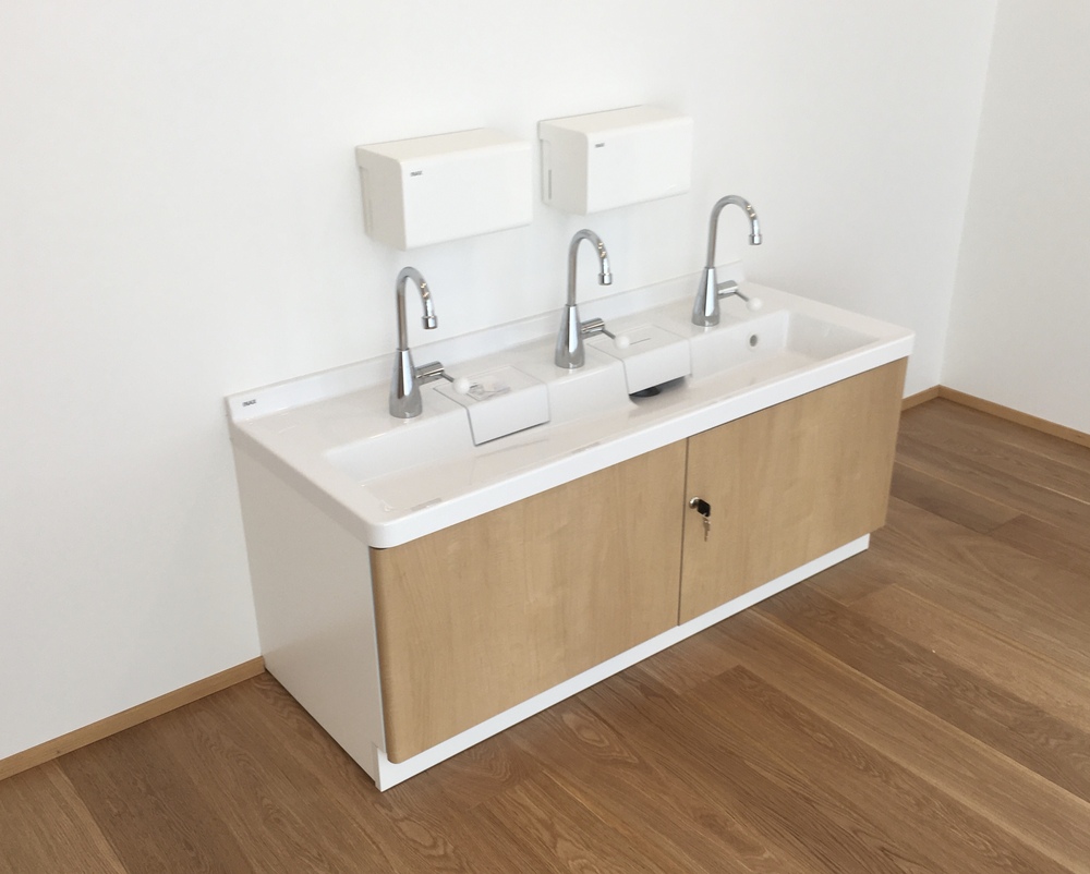 分かりずらいですが、園児たち用の手洗いカウンター。