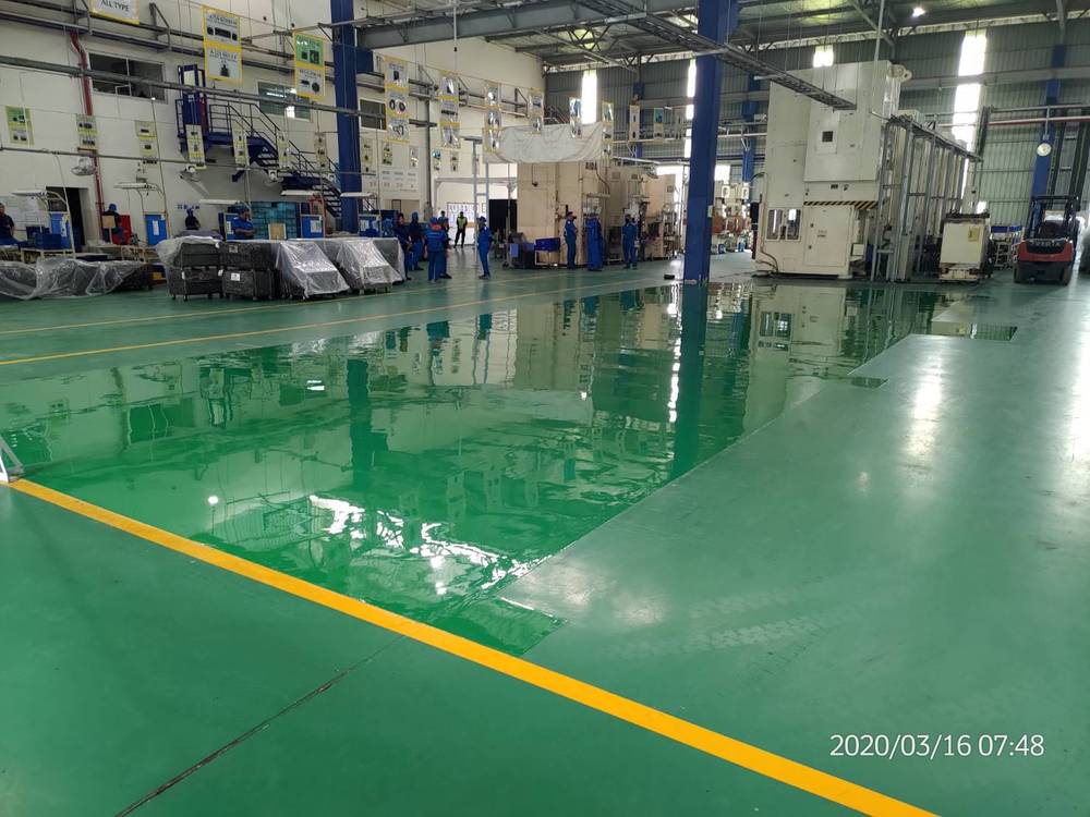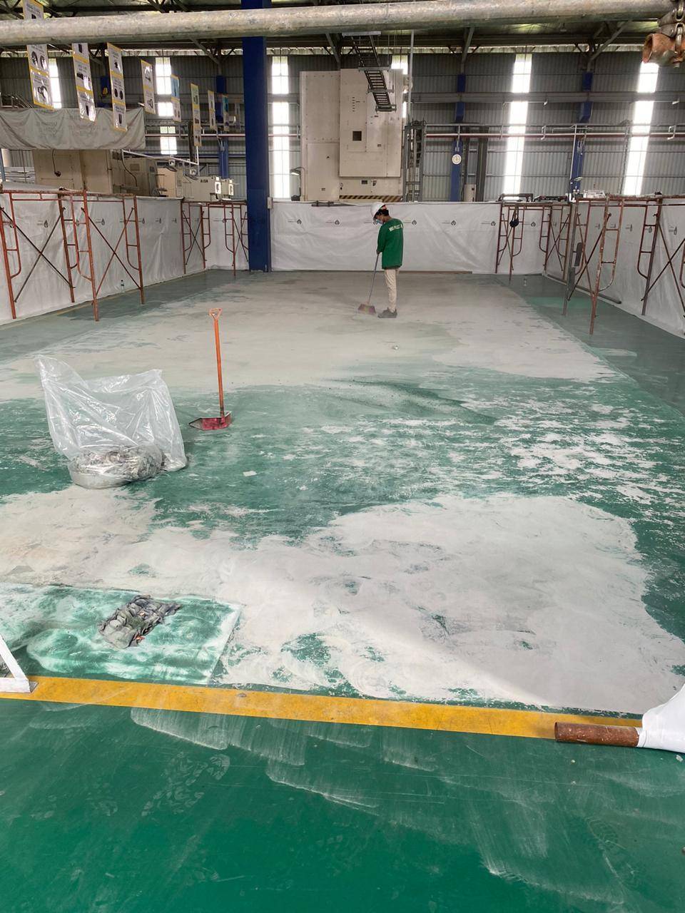 日本と同じくこちらインドネシアの工場も床塗装の修繕工事を行なっています。