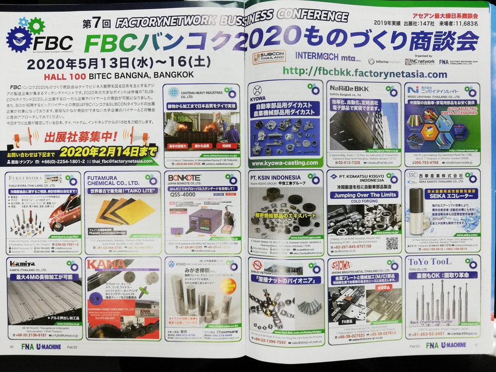 「FACTORYNETWORK BUSSINESS CONFERENCE」、通称FBCバンコク2020に出展致します。