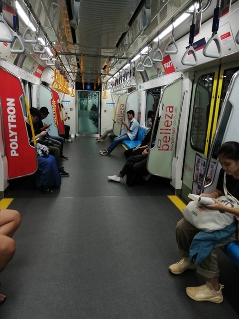 電車内。日本で生産した車両のようで違和感全くありませんね。